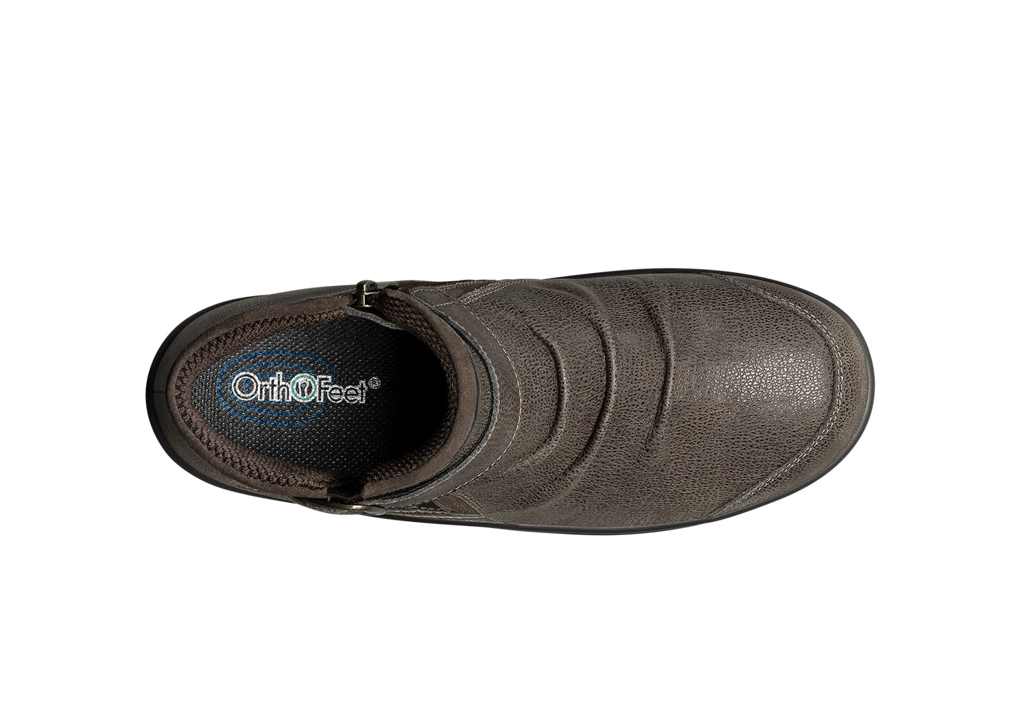 While an ultra-soft, ‘ruched’ leather upper charms with its versatile style, innovative Orthofeet features make Heidi a go-to bootie for getting more out of your day. Use the zipper on the inner side for remarkably easy on & off. The adjustable buckle, over stretch gore on the outer side, adds comfort that moves with you. Step out confidently with the Ortho-Cushion™ System.