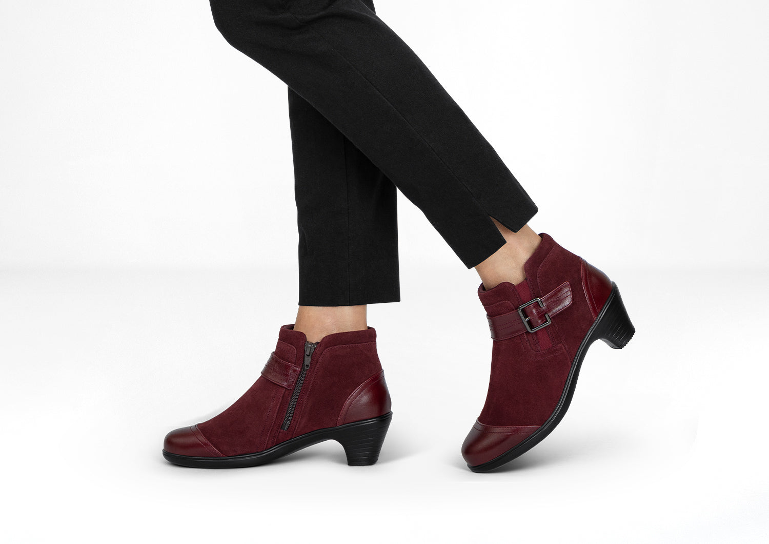 Who knew a stylish leather boot with a two-inch heel could offer the walking comfort of a sneaker and then some? Emma makes the impossible look easy, with Ortho-Cushion System support that evenly distributes foot pressure and a roomy toe box to keep every hour pain-free. A zipper for getting in easily and an adjustable strap over stretch gore fit your every move.