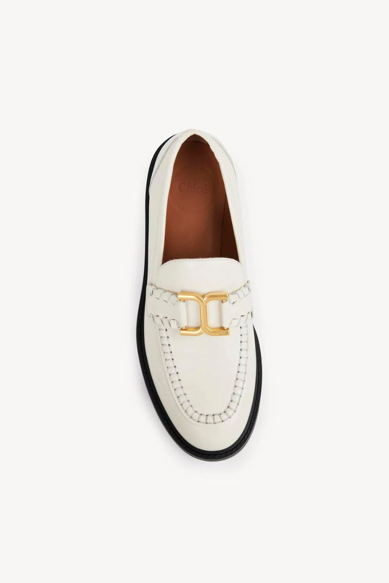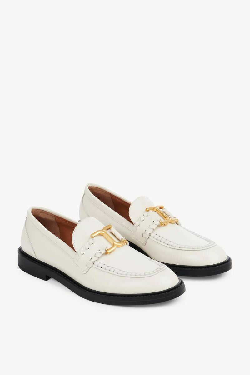 Reinterpreting the iconic leather goods line, this classic Marcie loafer is crafted from brushed calfskin elevated with the distinctive braided details and Chloé-engraved gold-toned hardware found in the Maison's Marcie bags.